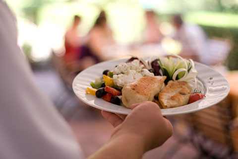 Rozmaringos vasalt csirkecomb, Pulykamell szeletkék Orly módra, Kemencés sertéscsülök, Vörösboros marhapörkölt, Tejszínes – gombás gnocchi, párolt rizs, petrezselymes burgonya, galuska, fűszeres steak burgonya, grillen sült zöldség kavalkád, zöld saláták öntettel,